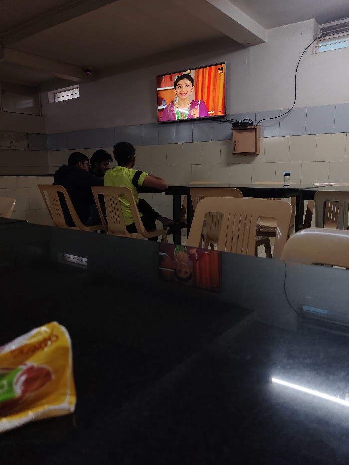 - "Three people sit at tables in what appears to be a cafeteria" by FM-yH1Mw2, licensed under CC BY 4.0