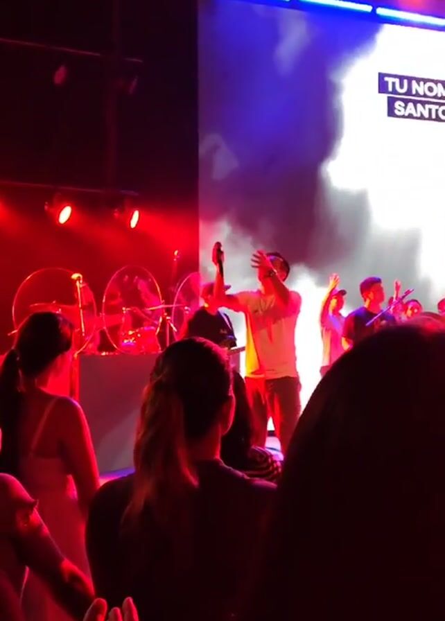 A live performance scene shows a band onstage, silhouetted against a screen showing "TU NOMBRE SANTO ES" and then "CON TODO LO QUE SOY