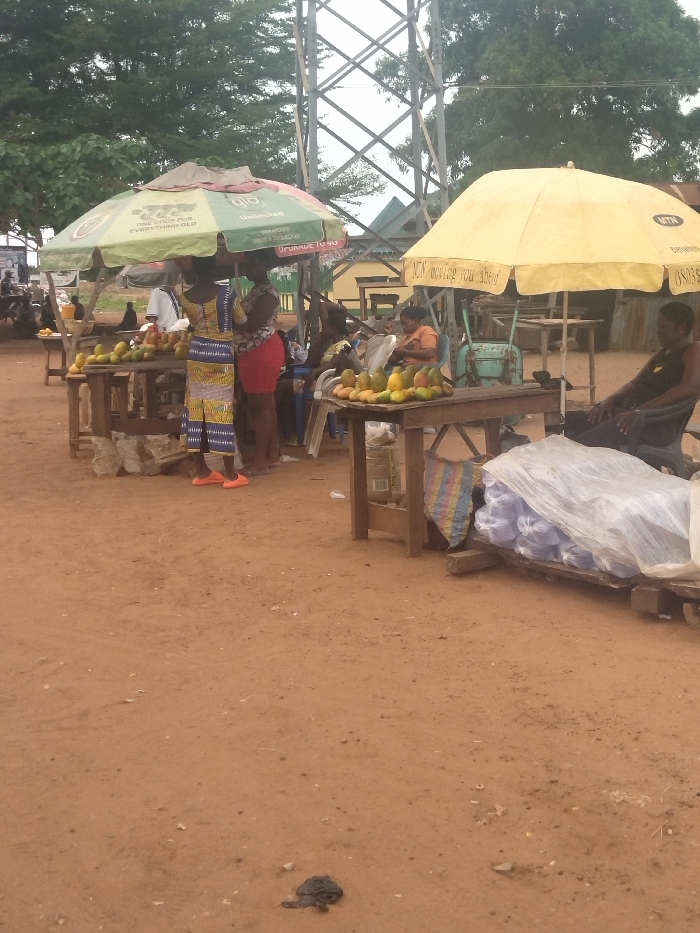 The scene takes place in a market setting in Asuir, Nigeria, at the coordinates provided