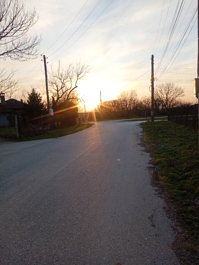 - "The image depicts an asphalt road scene in Alfatar, Bulgaria, illuminated by a low sun, indicating either sunrise or sunset" by FM-75hZp2, licensed under CC BY 4.0