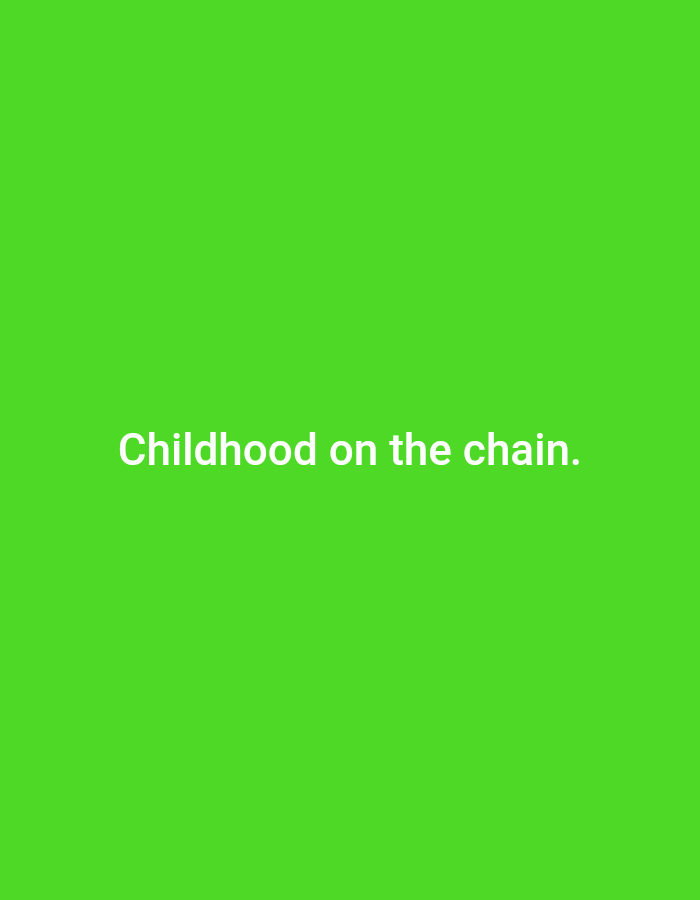 - "The image is a solid green background with the text "Childhood on the chain" by FM-3qHxd2, licensed under CC BY 4.0