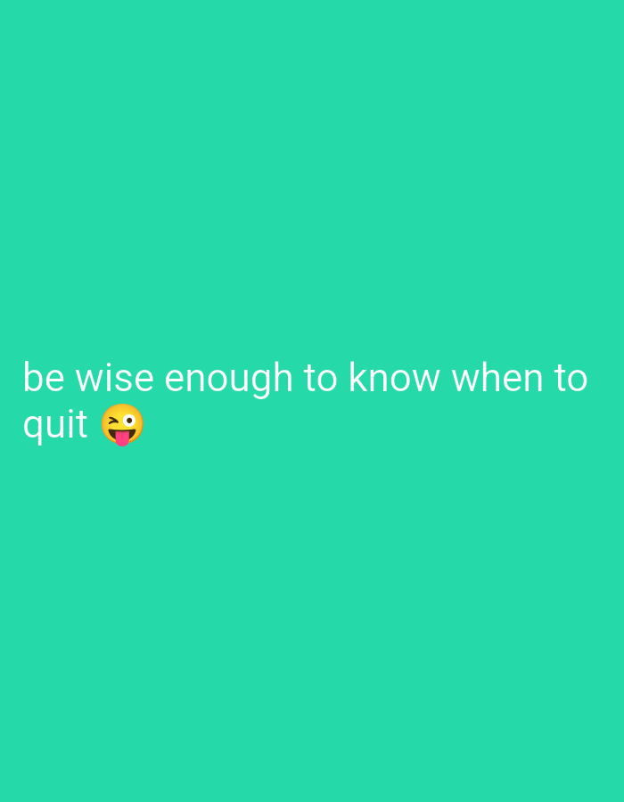 - "The image displays a solid turquoise background with the phrase "be wise enough to know when to quit" written in white" by FM-qH2n03, licensed under CC BY 4.0