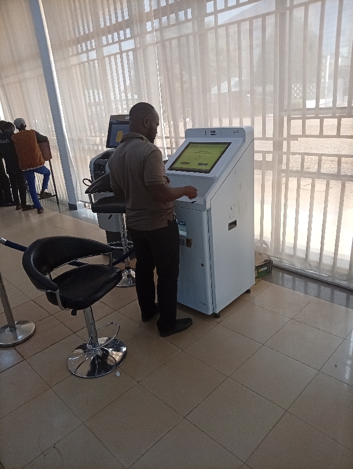The image displays an indoor public space, likely a financial or service center, consistent with facilities found in Jos, Nigeria