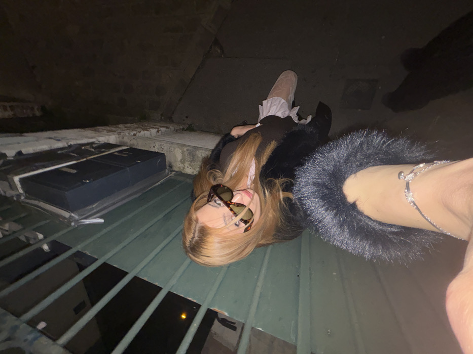 - "An outdoor, nighttime high-angle shot in Asnières-sur-Seine, France, features a female subject looking directly upwards at the camera" by FM-FyafH2, licensed under CC BY 4.0