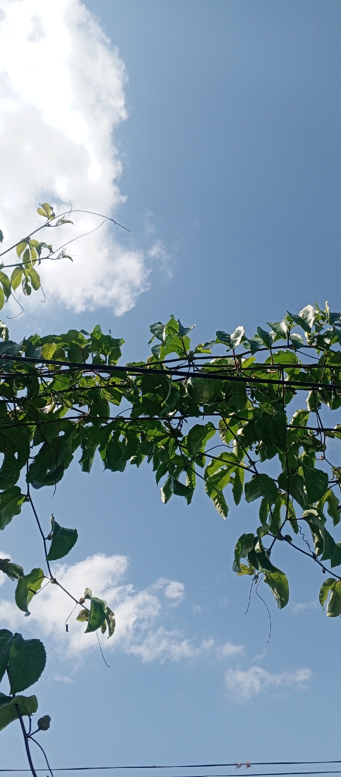 - "The image depicts an overhead view of a passion fruit vine against a partially clouded blue sky, located in Tinaquillo, Venezuela" by FM-OD70n1, licensed under CC BY 4.0