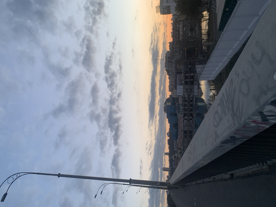 - "The image depicts an urban landscape at dawn or dusk, captured from an elevated position on a bridge in Kyiv, Ukraine" by FM-BI1Cp2, licensed under CC BY 4.0