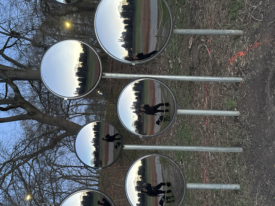 - "Several round mirrors are mounted on poles in a park setting" by FM-IdNfF2, licensed under CC BY 4.0