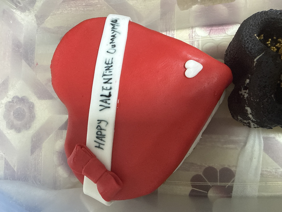 - "A heart-shaped pastry, covered in bright red fondant, features a small, white fondant heart on its upper right side" by FM-GGDR63, licensed under CC BY 4.0
