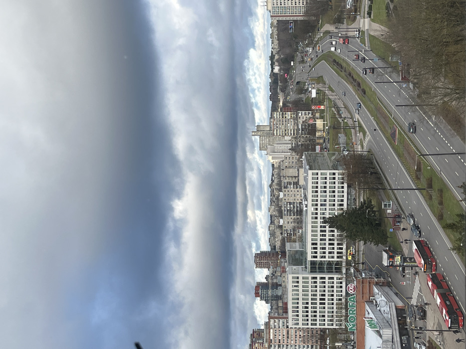 - "The image presents an elevated, wide-angle view of an urban landscape in Vilnius, Lithuania, specifically looking northwest along Ukmergės gatvė from a vantage point within the Šnipiškės district, likely near Konstitucijos prospektas" by FM-YUBw12, licensed under CC BY 4.0