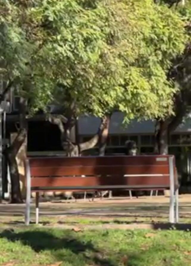- "brown wooden bench with metal supports sitting in a grassy area with trees" by FM-hin5S2, licensed under CC BY 4.0