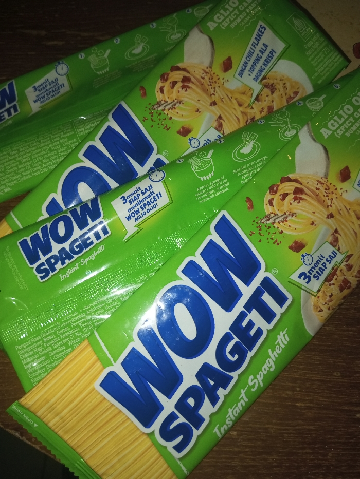 - "several green packages of "WOW SPAGETI Instant Spaghetti" by FM-3YrlQ2, licensed under CC BY 4.0