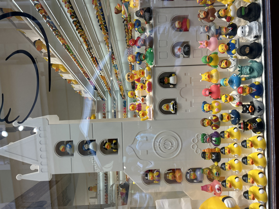 - "The image displays a retail store window, located in the Capital City of Prague, Czechia, exhibiting a vast collection of novelty rubber ducks" by FM-bltSH3, licensed under CC BY 4.0
