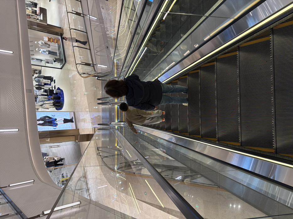- "The image depicts an interior scene of a modern, multi-level shopping mall located in Qinhuai District, China, captured from a downward-moving escalator" by FM-Uz1Dk1, licensed under CC BY 4.0