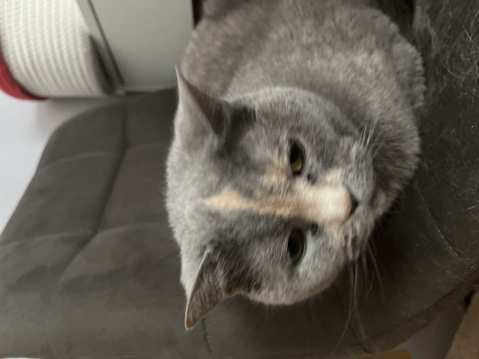 - "An indoor scene in Liepaja, Latvia, depicts a domestic cat positioned centrally on a dark grey, upholstered chair featuring visible tufting" by FM-ctogf2, licensed under CC BY 4.0