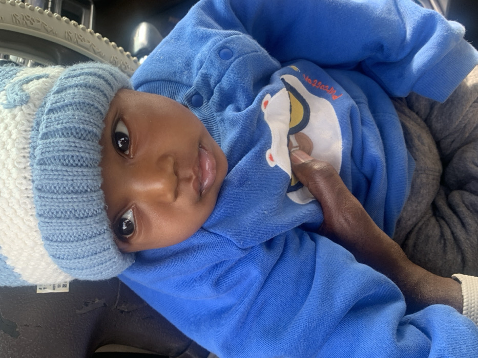 - "A baby wearing a blue and white knitted hat and a blue long-sleeved shirt is lying on a surface" by FM-IPnPh2, licensed under CC BY 4.0