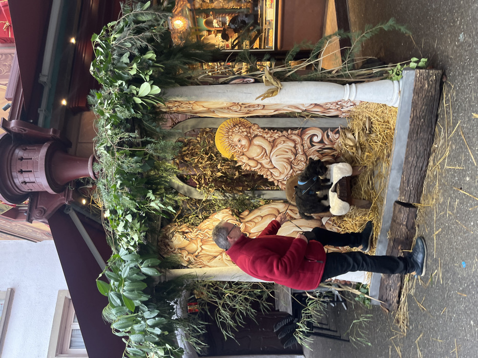 - "An outdoor scene in Sélestat, France, depicts a man interacting with two small dogs at a Christmas nativity display" by FM-eWTi73, licensed under CC BY 4.0