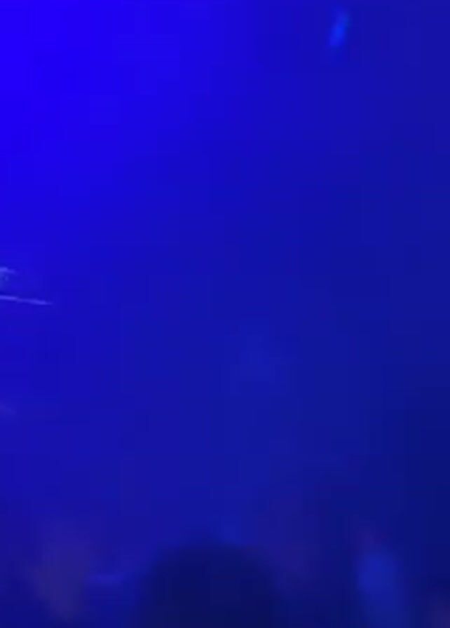 crowded nightclub, lit by blue lights and some visible light sources from above. People can be seen standing and moving around, seemingly dancing. Some are wearing light-colored clothing. The overall atmosphere suggests a lively social event, although the details are somewhat obscured by the low lighting and movement.