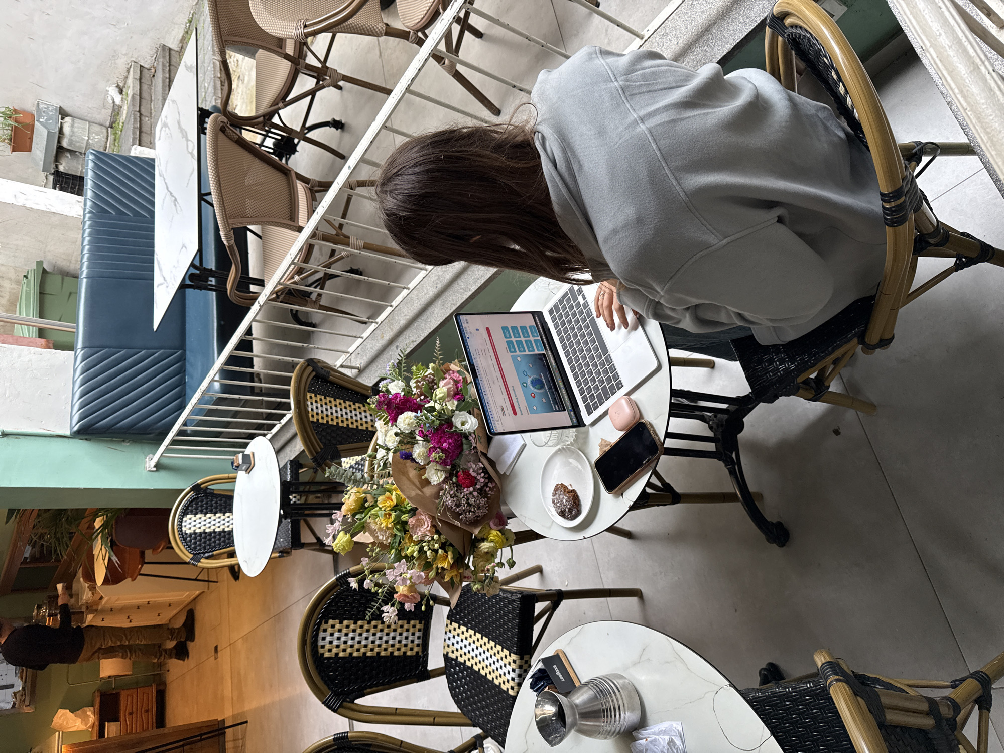 - "An overhead shot shows a woman working on a laptop at an outdoor cafe in Tel-Aviv, Israel" by FM-bbBQ42, licensed under CC BY 4.0