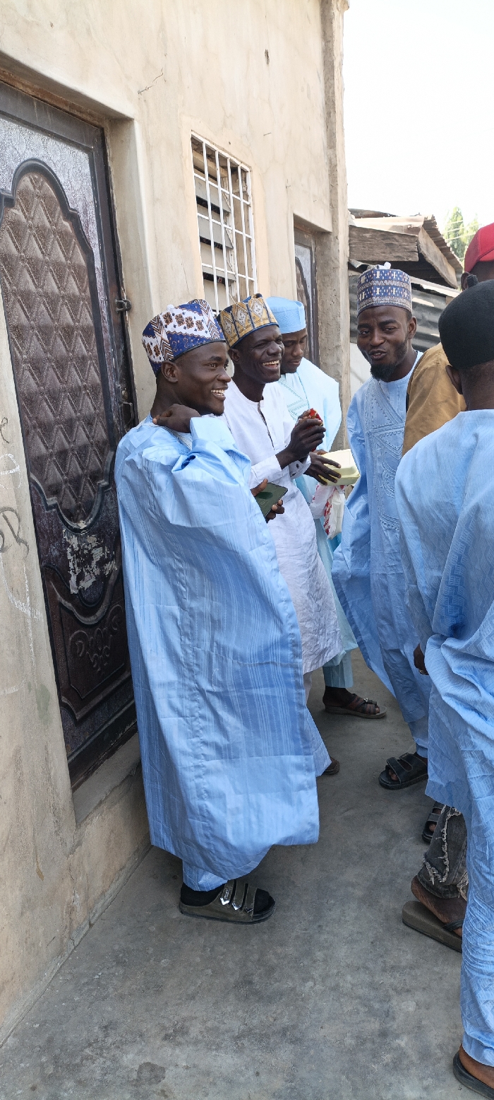 - "Six adult males are gathered on a light grey concrete surface in Kaura Goje, Nigeria, adjacent to a light-colored plastered building wall exhibiting cracks" by FM-tghlB3, licensed under CC BY 4.0