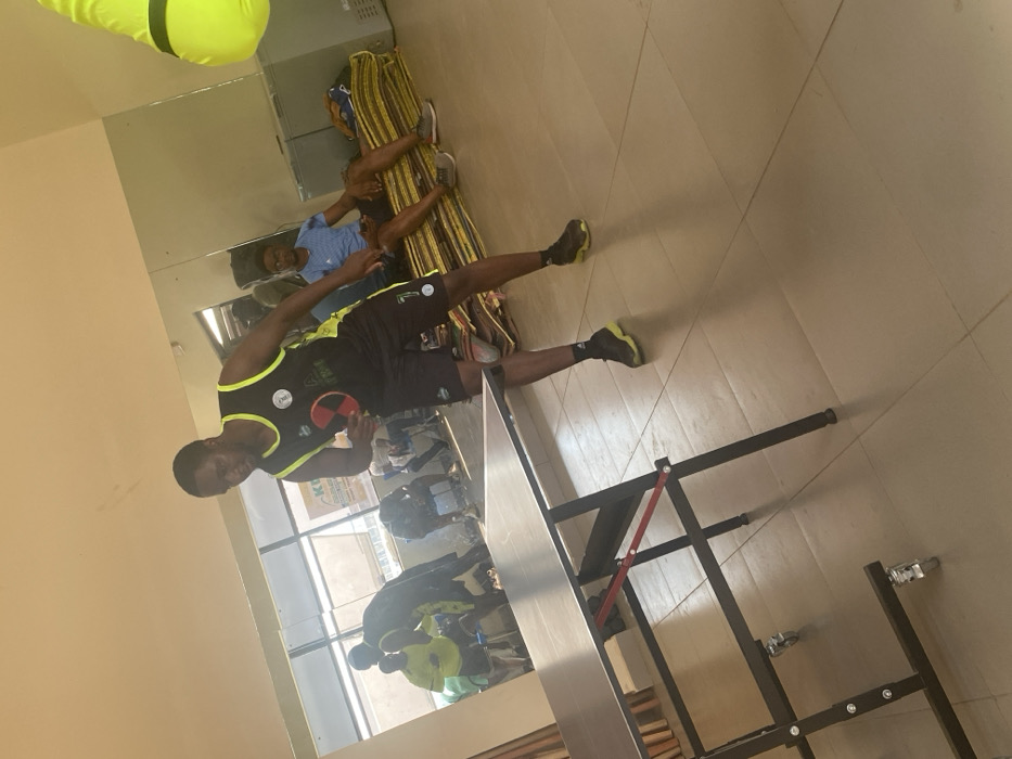An adult male stands in a ready position for table tennis within an indoor facility in Unguwar Sarki, Nigeria