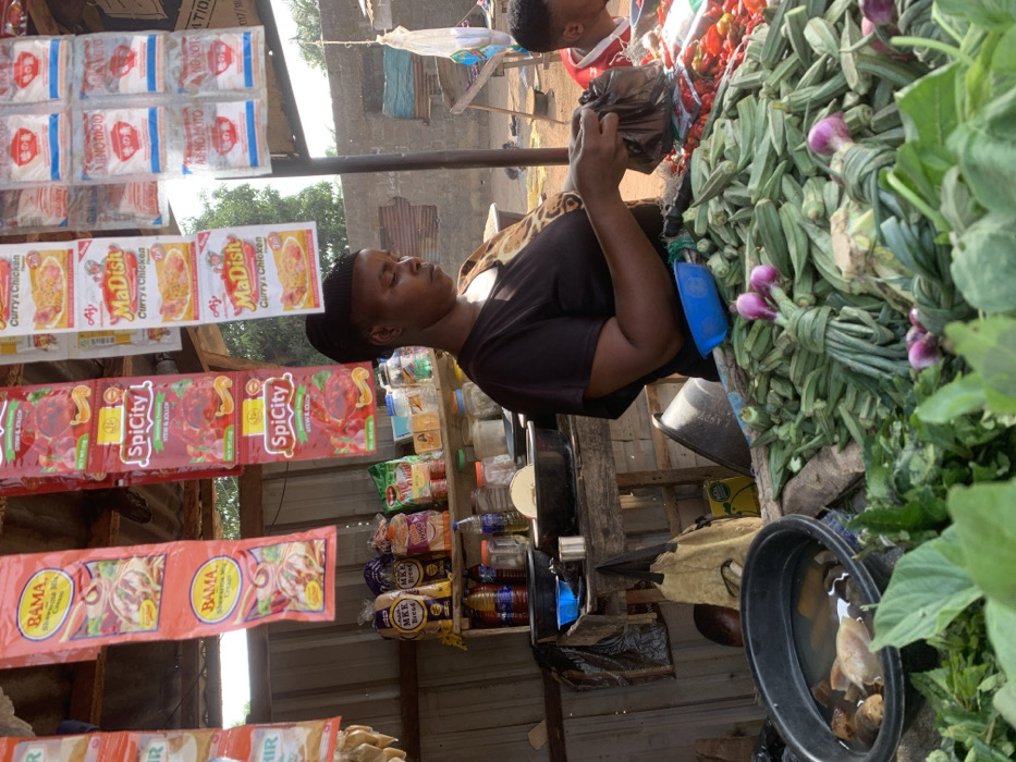 This image depicts an outdoor market stall in Akwanga, Nigeria