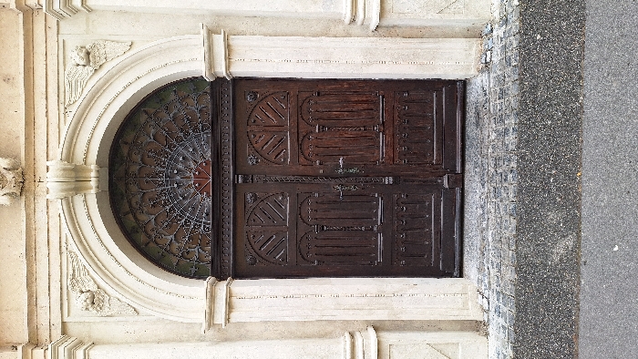 - "A detailed, eye-level frontal view captures an ornate entrance in Szombathely, Hungary" by FM-chd693, licensed under CC BY 4.0