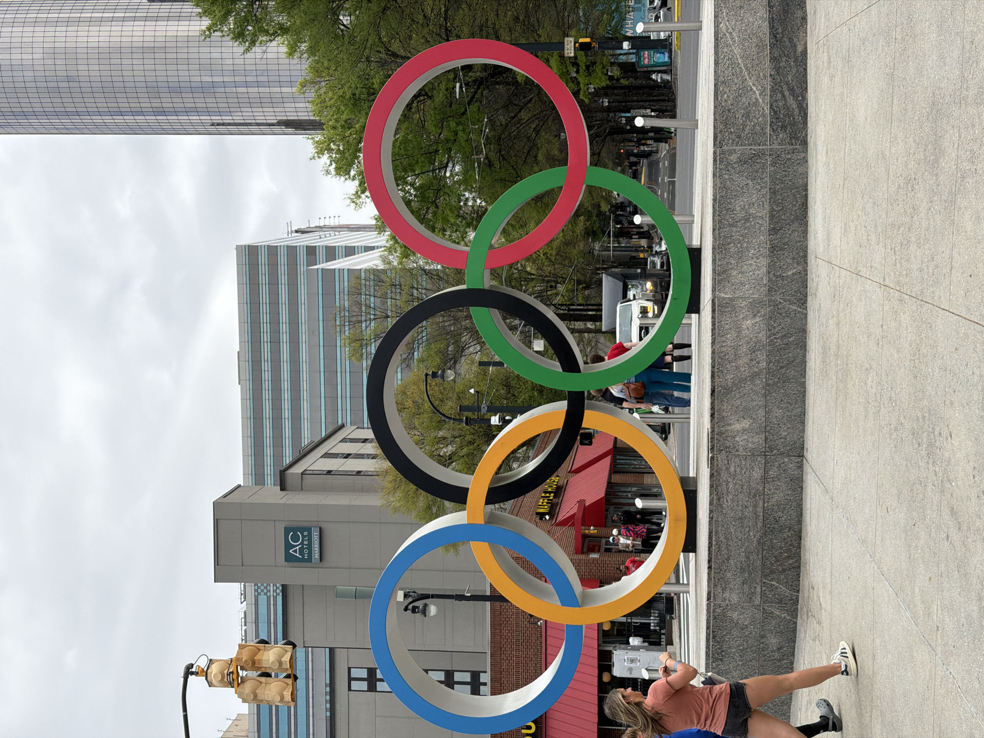 - "The image depicts the Olympic Rings sculpture in Atlanta, Georgia, United States, set against a backdrop of city buildings and street scenes" by FM-jNpNN2, licensed under CC BY 4.0