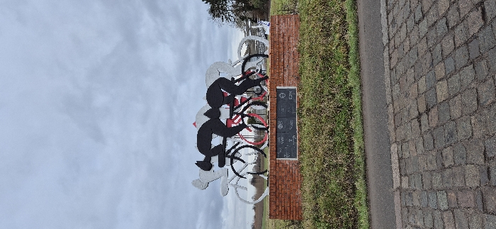 - "A monument featuring three stylized bicyclists stands prominently in Willems, France, under an overcast sky" by FM-Grq9g2, licensed under CC BY 4.0