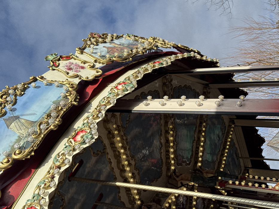 - "A brightly illuminated section of a carousel is depicted in Reichstett, France, under a clear blue sky with scattered white clouds" by FM-IL2Dl2, licensed under CC BY 4.0