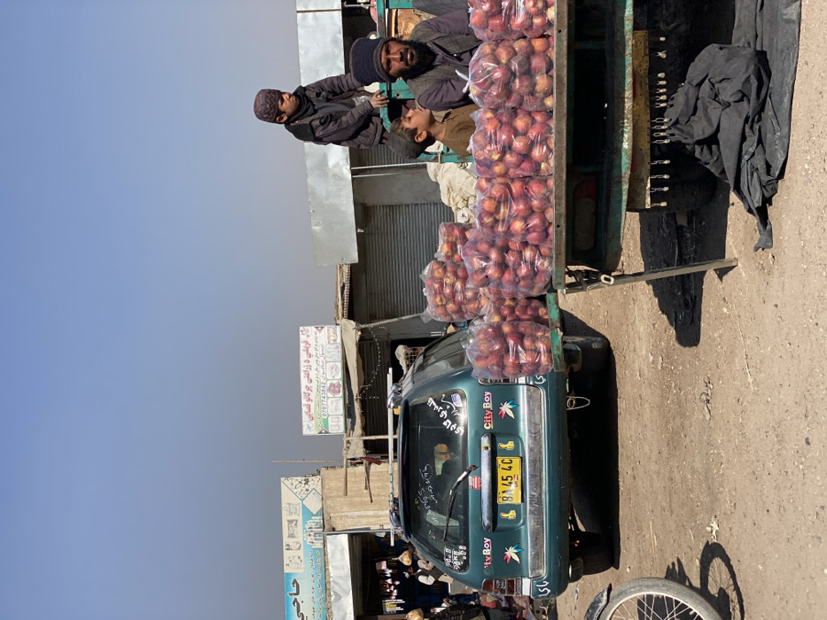 - "A street scene shows a green vehicle overloaded with bags of red fruit" by FM-B5wmg2, licensed under CC BY 4.0