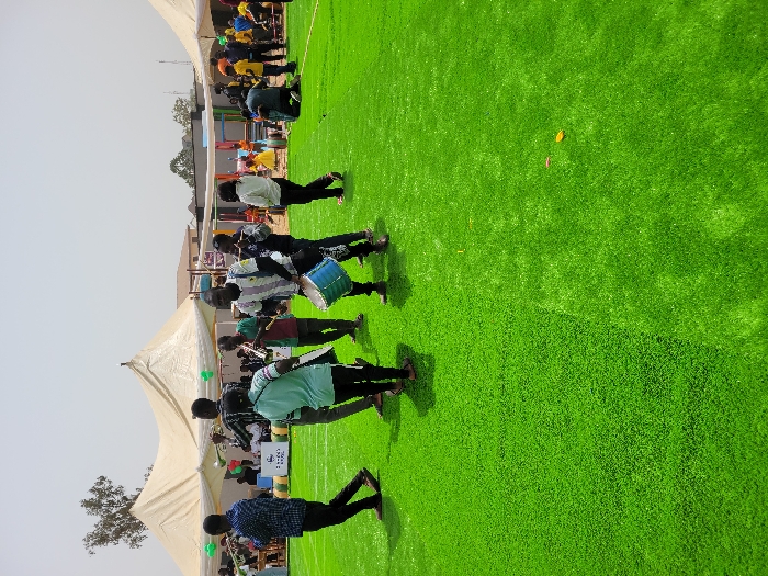 - "The image depicts an outdoor event taking place on a bright green artificial turf field, identified as being in Jos, Nigeria" by FM-DkY493, licensed under CC BY 4.0