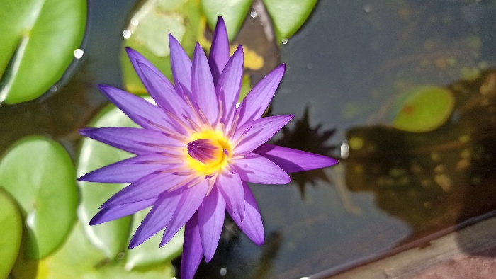 - "The image presents a close-up, high-angle view of a single, fully open purple water lily (Nymphaea) floating on a dark body of water, located in Kigali City, Rwanda" by FM-oIWu62, licensed under CC BY 4.0