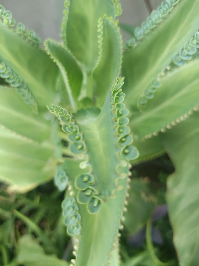 - "The image depicts a detailed, close-up, top-down view of a *Kalanchoe daigremontiana* plant, commonly known as Mother of Thousands, situated in Ouderkerk aan de Amstel, Netherlands" by FM-PvkdH3, licensed under CC BY 4.0