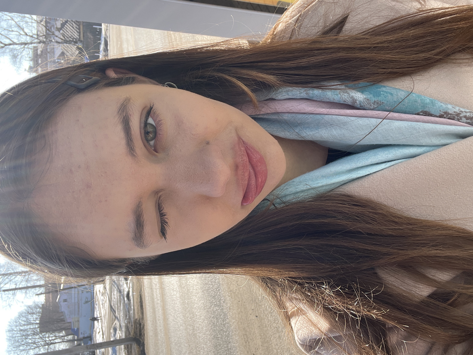 A young adult female is depicted in a close-up, head-and-shoulders portrait, taken outdoors in Kladovitsy, Russia