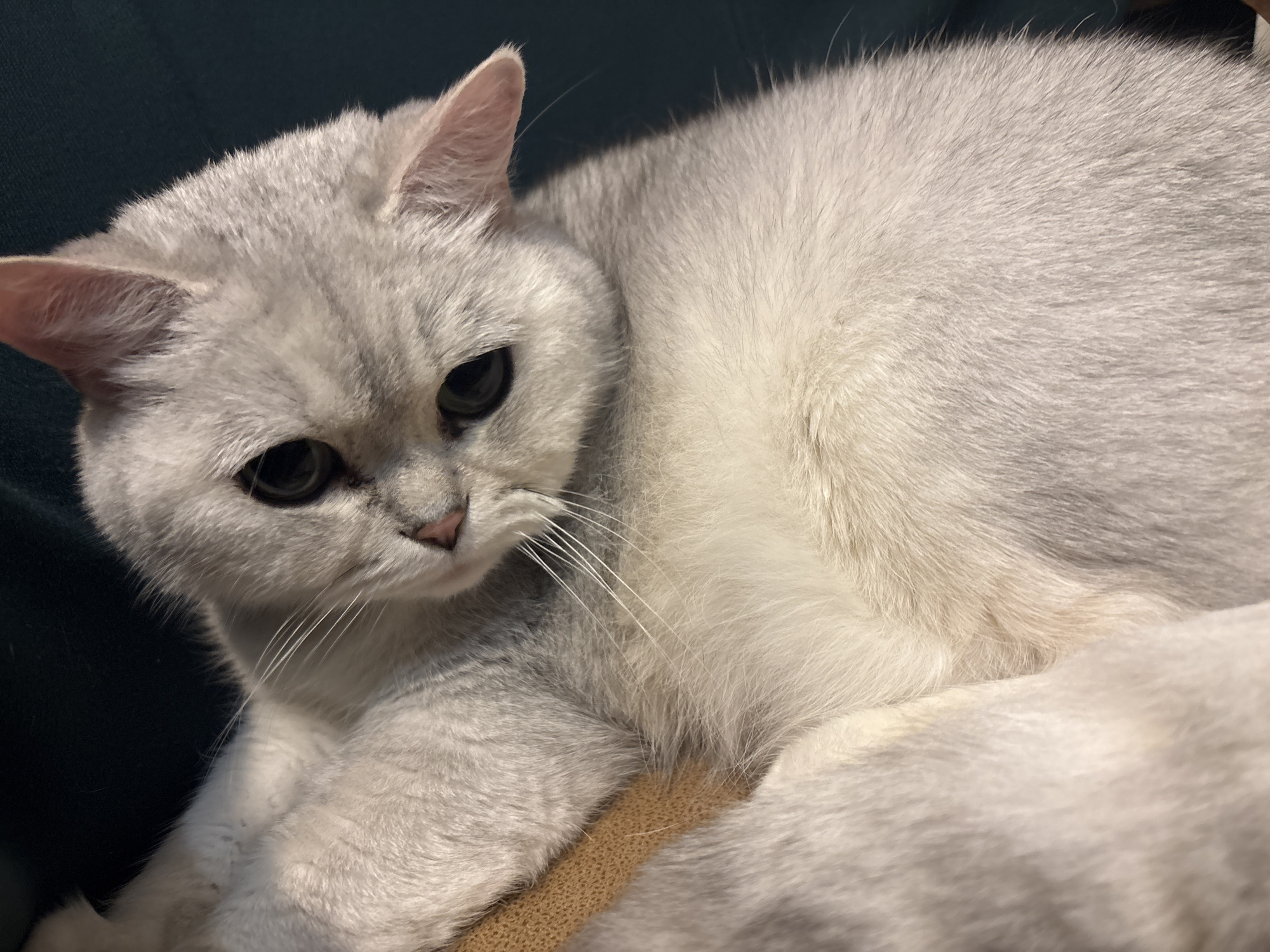 - "close-up of a silver cat with large, round eyes" by FM-PAz8K2, licensed under CC BY 4.0
