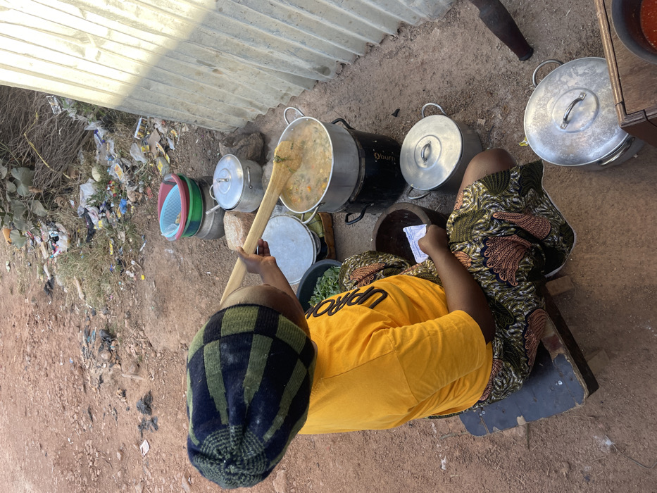 The scene depicts an outdoor cooking operation in Barakin Lerawi, Nigeria