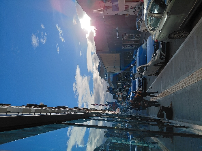 - "The scene depicts a bustling urban street in Ushuaia, Argentina, illuminated by low-angle sunlight under a clear blue sky with scattered white clouds" by FM-HAKh33, licensed under CC BY 4.0