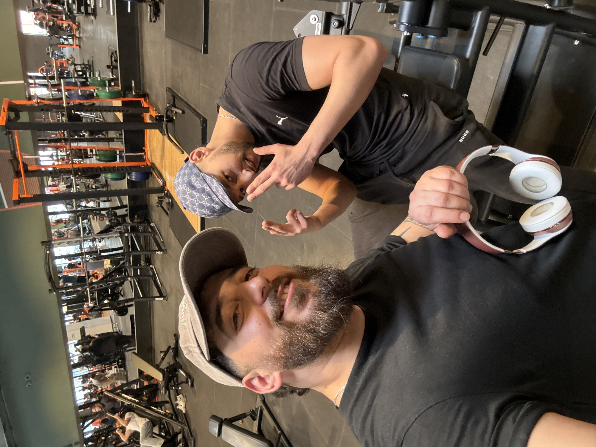 - "Two adult males are depicted in a selfie taken within an indoor gym located in Hœnheim, France" by FM-i0fjc2, licensed under CC BY 4.0