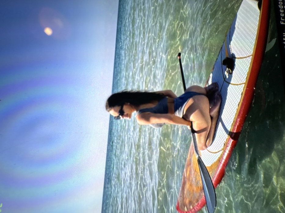 - "A female individual is depicted kneeling on a stand-up paddleboard in clear, sunlit ocean water under a bright blue sky" by FM-0IRnE2, licensed under CC BY 4.0