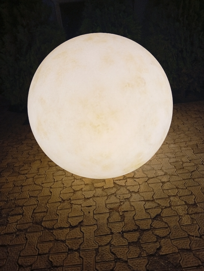 - "A large, spherical, illuminated fixture rests on an outdoor paved surface at night in Abuja, Nigeria" by FM-I8l5e2, licensed under CC BY 4.0