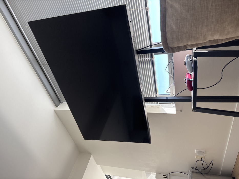 - "An indoor scene in Boston, United States, displays a large, black, flat-screen television positioned on a black mobile stand" by FM-x2mAD2, licensed under CC BY 4.0