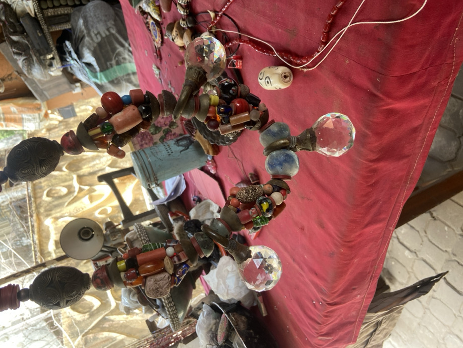 - "The image depicts a detailed view of an elaborate, multi-strand beaded ornament, featuring large faceted clear crystal spheres, suspended above a table in Iranla, Nigeria" by FM-zFtpw1, licensed under CC BY 4.0