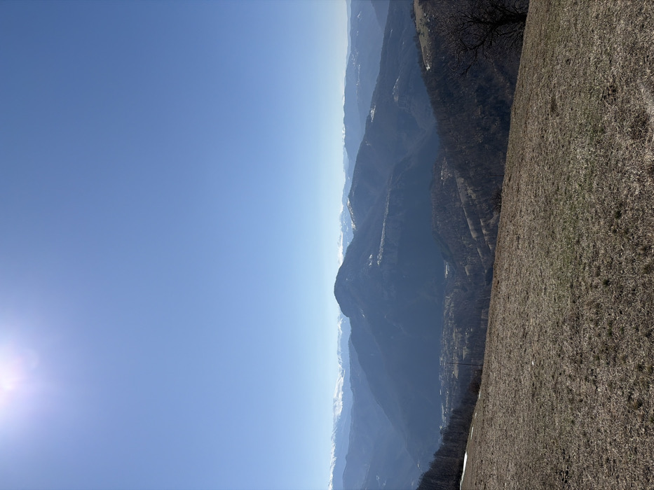 - "The image displays a panoramic mountainous landscape with a clear, bright blue sky occupying the upper two-thirds of the frame, featuring a visible sun flare in the top-left corner" by FM-sGIH73, licensed under CC BY 4.0