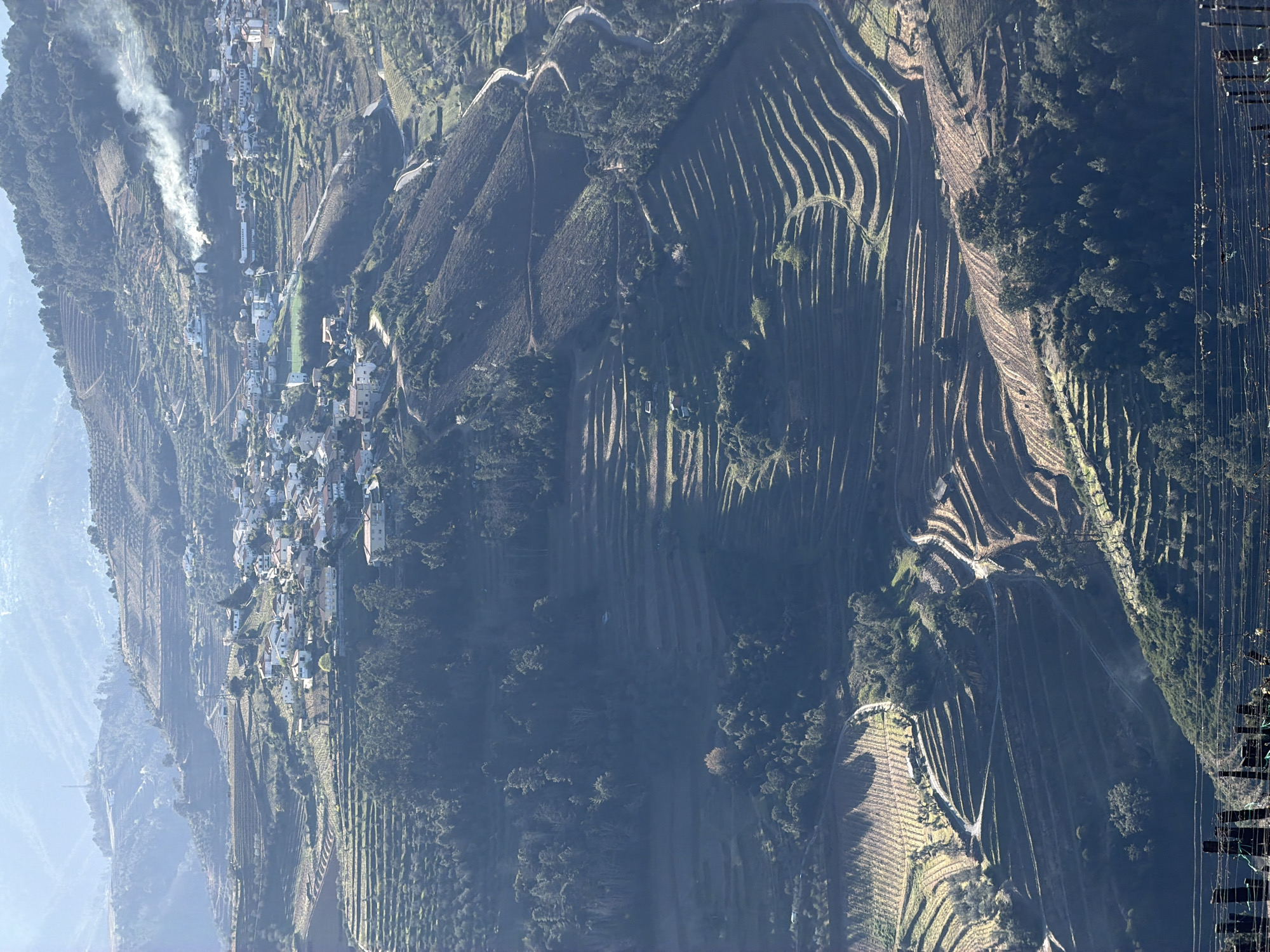 - "This aerial view depicts a landscape with terraced hillsides and a cluster of buildings, likely a village, nestled along the slopes" by FM-XZbV72, licensed under CC BY 4.0