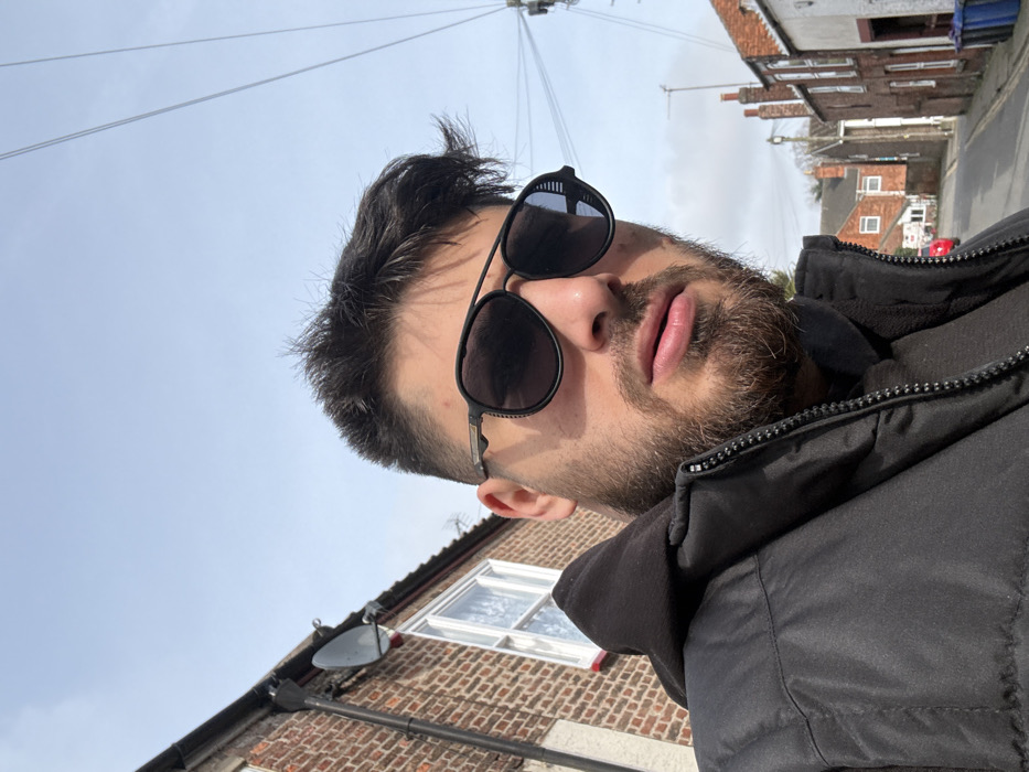 The image captures a selfie of a male individual standing on a residential street in Boston, United Kingdom