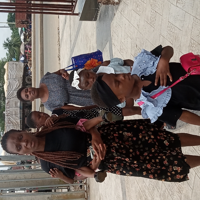 - "A group of six individuals, five female and one infant/toddler, are depicted outdoors in Ura Nta Umuarandu, Nigeria, on a paved surface" by FM-AzUhs1, licensed under CC BY 4.0