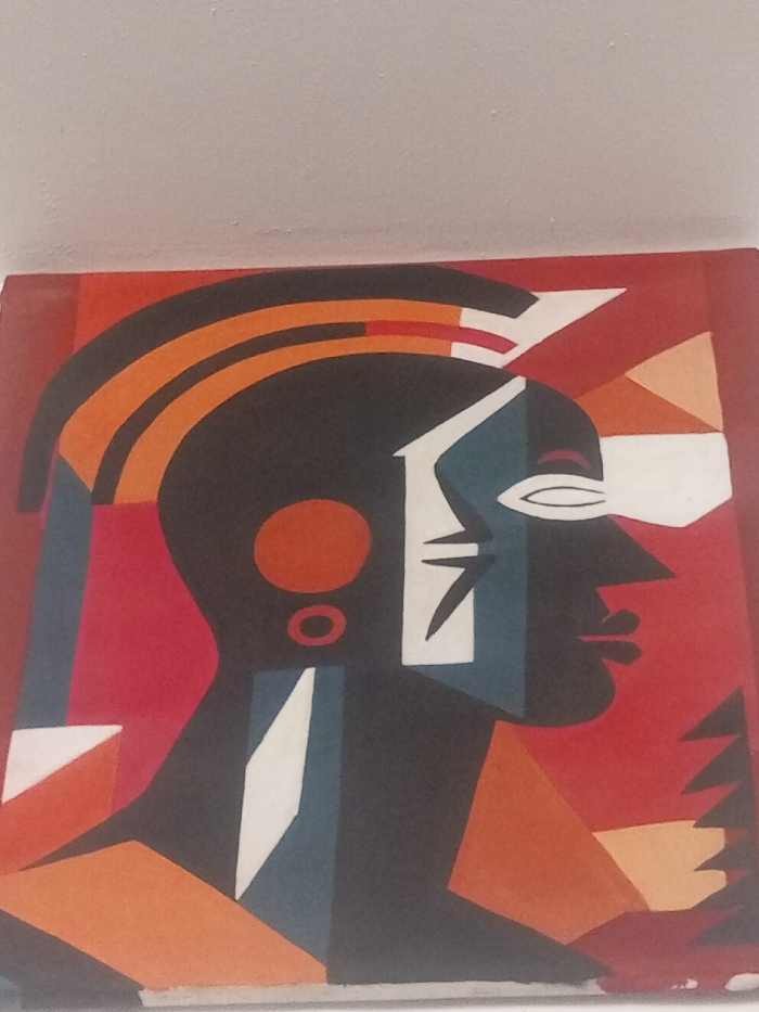 This image displays an abstract painting, situated indoors in Gura Top, Nigeria