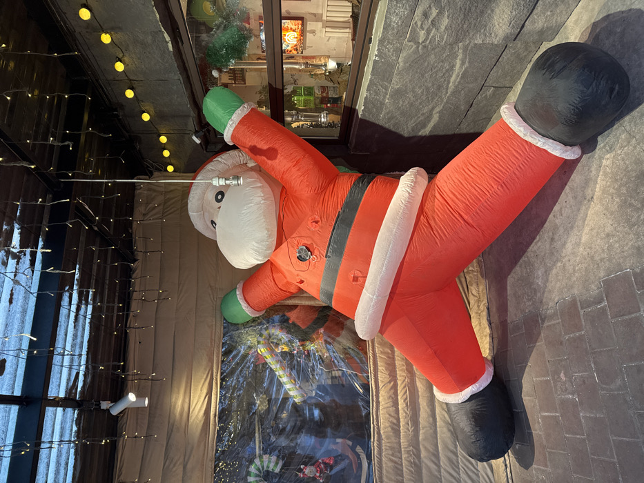 An inflatable Santa Claus figure is positioned prominently in a decorated indoor or enclosed outdoor space within Lishan District, China