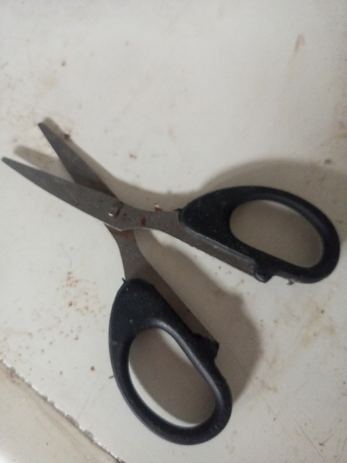- "A pair of black-handled scissors lies open on a surface with scattered brown particles" by FM-LejCA3, licensed under CC BY 4.0