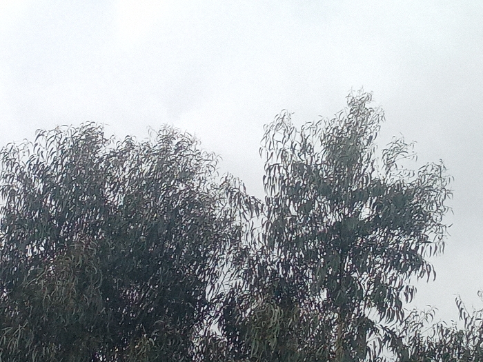 - "The image displays the upper canopy of a tree, likely a eucalyptus given the elongated, narrow leaves, against a uniformly light gray, overcast sky" by FM-WqGiz1, licensed under CC BY 4.0